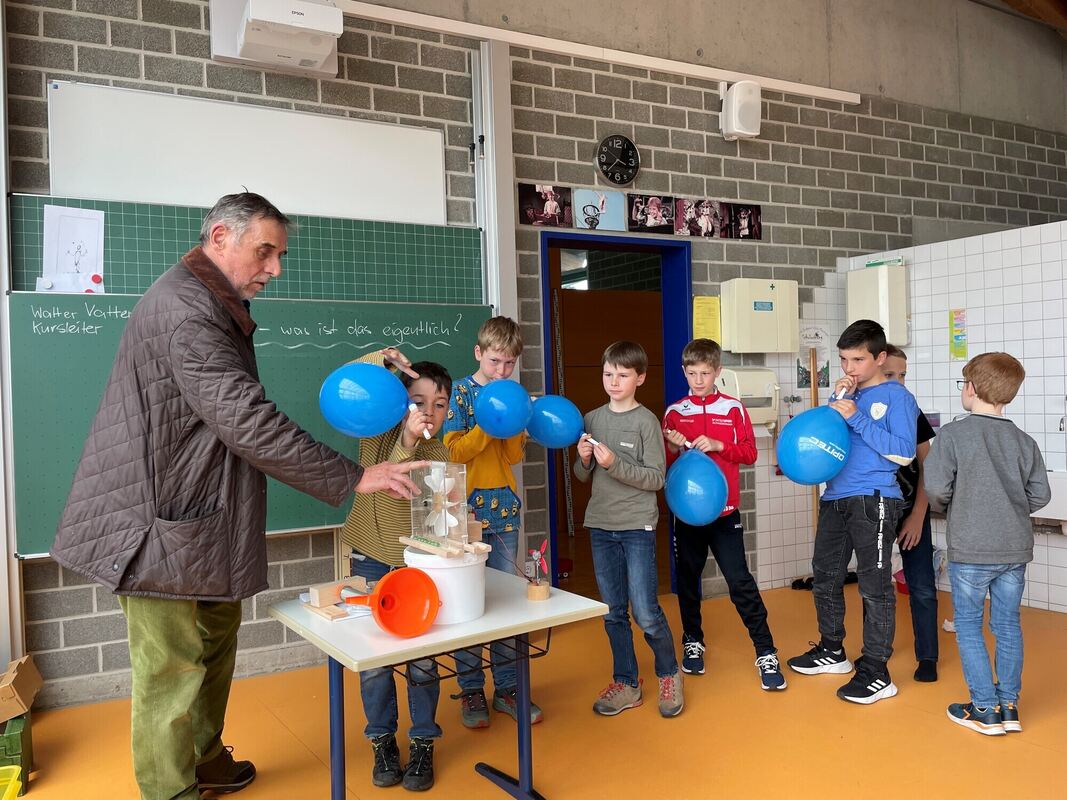 Die Grundschüler treiben die Windmühle mit selbst gemachtem Treibstoff an. FOTO: OGRZEWALLA