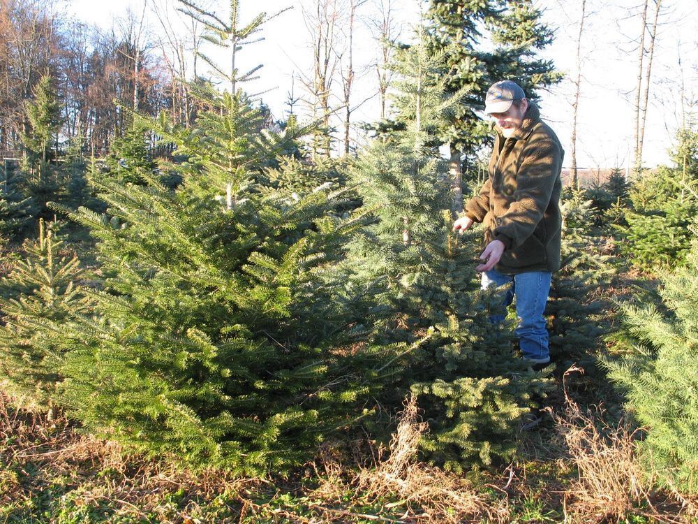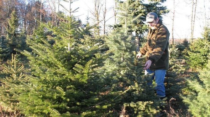 Jeder Baum ein Unikat. Der St. Johanner Christbaumerzeuger Jürgen Goller in seinem »Wald«. GEA-ARCHIV-FOTO: GEIGER