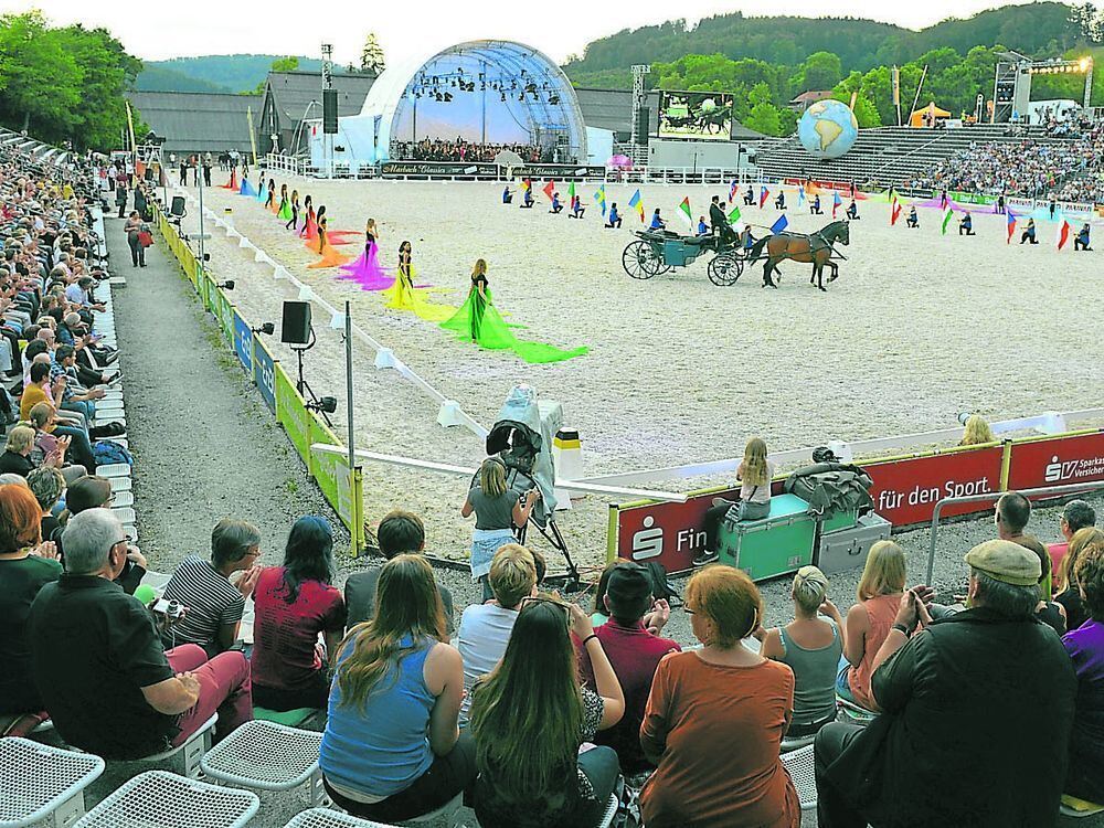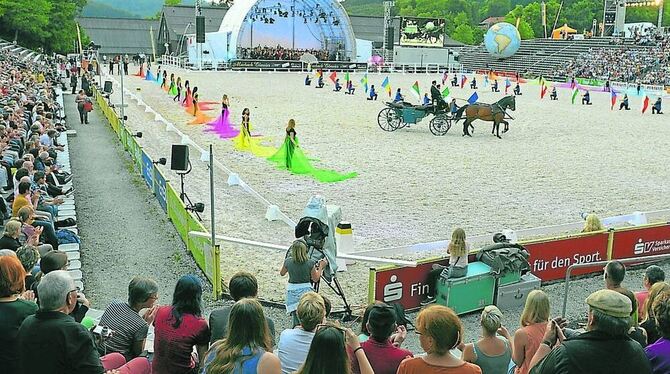 Tänzer und Pferde vereinten sich bei den Marbach Classics in der großen Gestütsarena. GEA-FOTO: PACHER