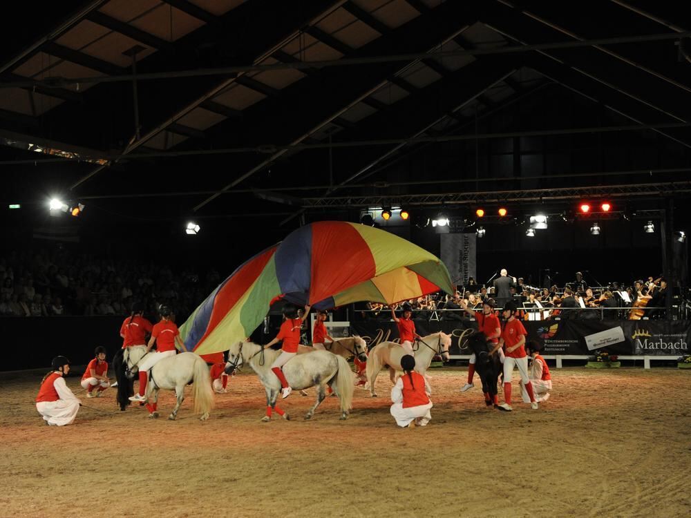 Ein Bild in allen Farben des Regenbogens: Das Ponyteam der Reitervereinigung Biberach zeigte, wie man auf kleinen Pferden ganz großen Eindruck macht. FOTO: MAXIMILIAN SCHREINER