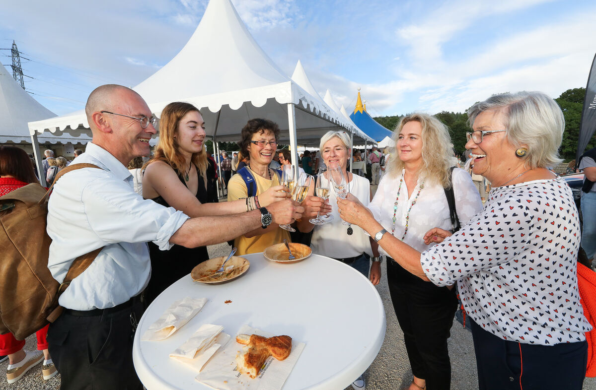 Eis vom Lautertal. Die bienenfleißigen Teams der Biosphären-Gastgeber Hotel Graf Eberhard, Hotel Gasthof Herrmann und Brauerei-Gasthof Lamm sorgten dafür, dass die Besucher zwei echte Genuss-Abende erleben durften. In der kleinen Zeltstadt an der Gestütsarena tischten sie auf, was die Region an Köstlichem zu bieten hat: von Forellenröllchen mit Kräutern und Frischkäse oder Radieschen-Graupensalat mit Schinken vom Alblinsenschwein bis zum Sommerbeeren-Ragout mit Lautertaleis in so aromatischen Geschmacksrichtungen wie Birne-Holunder. Die Alblammkeule wurde begleitet von »Schäferknöpfle«, einer Art Semmelknödel, und der regionale Klassiker Alblinsen kam mit exotischer Note als Curry daher. Dazu schmeckten die Tropfen des Staatsweinguts Weinsberg.