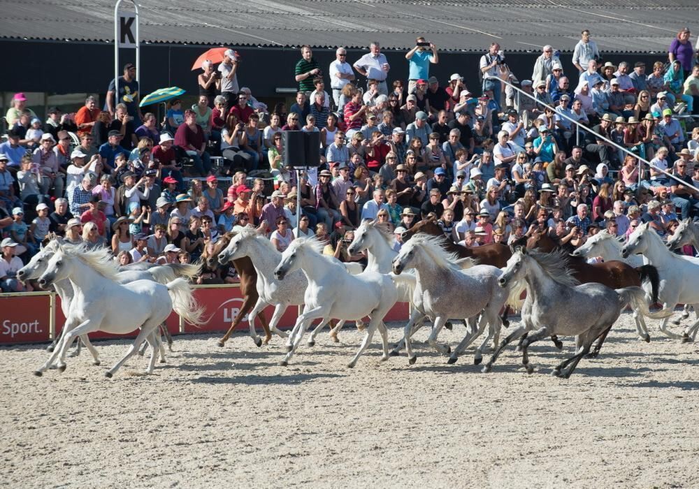 Die silberne Herde im freien Galopp. Im nächsten Jahr wird das 200-jährige Bestehen der Weil-Marbacher Vollblutaraberzucht gefeiert.