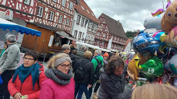 TROCHTELFINGEN. »Sie sind die hübscheste Frau hier. Sie schauen so freundlich.« So werden allein über den Martinimarkt schlendernde Frauen jeden Alters von einem älteren Herrn angesprochen. Obgleich ihm der Marktbummel auch damit kein festes Date beschert, so macht sein eifrig aufgesagtes Sprüchlein bei der Damenwelt gute Laune und bringt sie zum Lächeln.