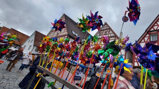 Und gut gelaunt sind die Trochtelfinger immer, wenn das Städtle zum Traditionsmarkt vor dem Martinstag zum Treffen, Schlemmen, Kaufen und Schwätzen einlädt. Kinderherzen schlagen bei einer Fahrt mit dem Karussell, am Schleck-Stand oder bei den Spielzeughändlern höher. Wer sich mit warmer Unterwäsche, Wollsocken und Lammfellprodukten eindecken will, findet die passende Ware. Hungrige können sich an den Essensständen oder in den Gasthäusern mit Deftigem versorgen oder Käse, Oliven, Wurstwaren und mehr fürs Vesper, Tee, Gewürze, Honig oder Likör mit nach Hause nehmen. Einziger Wermutstropfen: Wer seinen Messer und Scheren einen scharfen Schliff verpassen lassen wollte, hatte in diesem Jahr das Nachsehen – der Messerschleifer fehlte. Dafür gab’s neue Gemüse-Schnibbelhilfen, Reinigungsprodukte, Socken, Schuhe, Kleidung, Mützen, Gürtel, Taschen, Haushaltshelfer, Einrichtungsgegenstände und Adventlich-Florales und als Snack zwischendurch heiße Maronen, Probiererle vom Bergkäse und nach dem Mittagsimbiss – »zum Schleckstand gehen wir hinterher« – gebrannte Mandeln, Lebkuchenherzen, Magenbrot, Zuckerwatte und Süßigkeiten satt.