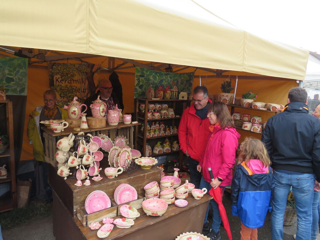 Bürgermeister Davide Licht freute sich bei der Eröffnung des Marktes, dass in diesem Jahr gleich zwei Jubiläen in Melchingen gefeiert werden können. Zum einen den 40. Töpfermarkt, der einmal coronabedingt abgesagt worden war, zum anderen 1 250 Jahre Melchingen. Der neue Standort des Marktes sei außerordentlich schön, da auch der Rathausplatz mit integriert sei, so Licht. Sein Dank galt der Veranstalterin Eva Nibbe: »Dieser Markt gehört zu Melchingen und ist nicht mehr wegzudenken«. Ortsvorsteher Horst Lamparth bedankte sich bei den Anwohnern, die Einschränkungen in Kauf nehmen mussten und trotzdem Flächen zur Verfügung stellten. Ebenso dankte er den Vereinen, die die vielen Besucher mit Essen und Getränken versorgten.