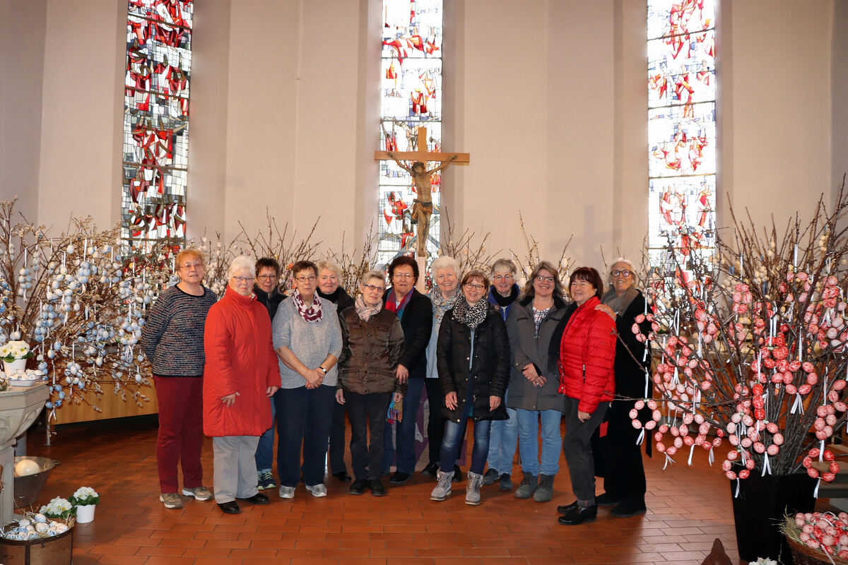 Fast das ganze Jahr über treffen sich Frauen immer dienstags im Pfarrsaal, um an den Eiern zu arbeiten. Sogar Frauen aus Bad Urach, so wie Renate Abel, »weil es Spaß macht und stets gut wird«. Ein einziges Ehepaar hat für diesen Eiermarkt 680 Wachteleierkränze gebunden, letztes Jahr waren es 480.