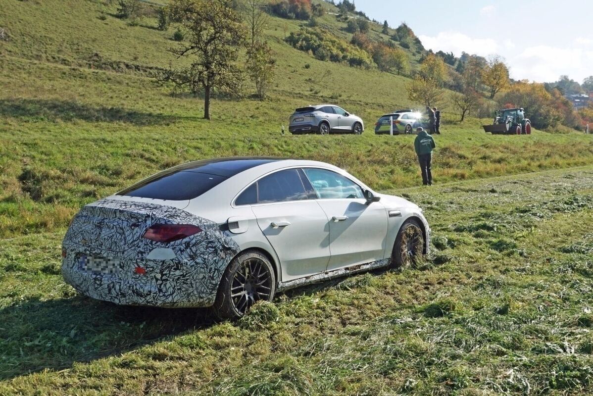 Mercedes-Erlkönig kommt bei Hundersingen von Straße ab