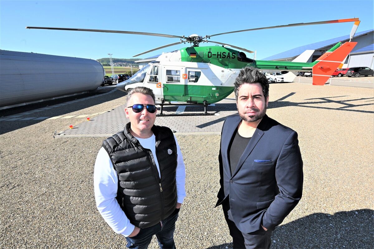 Gebrauchten Heli abzugeben: Eine neue SWR-Doku schildert, wie die Brüder Sven (links) und Michael Kanz einen Polizeihubschrauber an den Mann oder die Frau bringen. FOTO: PR