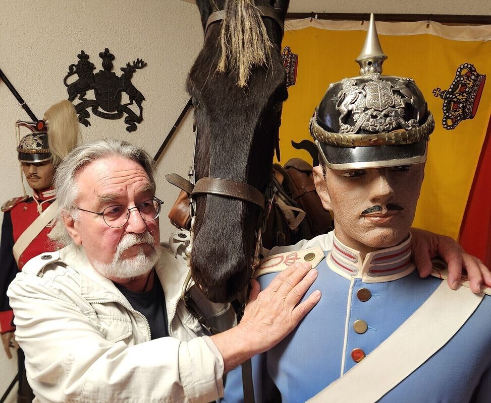 Der Engstinger Sammler Joachim Erbe zeigt die Dragoner-Uniform seines Opas Johannes Wörner.