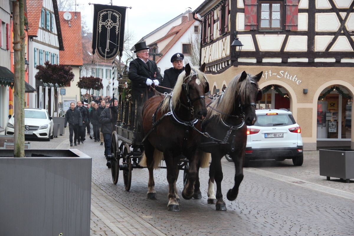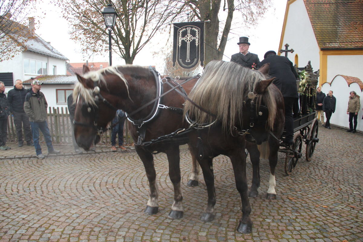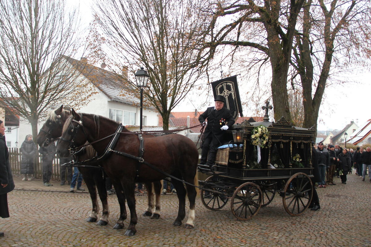 HAYINGEN. Durch Hayingen zog am Freitag ein ungewöhnlicher Trauerzug. Zwei Süddeutsche Kaltblüter zogen den Leichenwagen vom Wohnhaus des verstorbenen Manuel Matzner durch die von Fachwerkhäusern gesäumte Ortsmitte zum Hayinger Friedhof, gefolgt von zahlreichen Trauernden. Manuel Matzner hatte sich das so gewünscht. Der junge Mann starb an einer schweren Krankheit, hatte Zeit, sich Gedanken über die letzte Reise zu machen.
