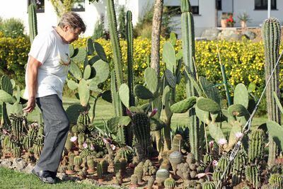 HOHENSTEIN-BERNLOCH. Von wegen raues Alb-Klima. In Bernloch hegt und pflegt Renate Hirrle den Sommer über vierhundert Kakteen im Freilandbeet. Viele der Pflanzen sind Mitbringsel aus Spanien, Marokko, Monaco oder Italien. Die Bernlocherin leitete 35 Jahre lang mit ihrem Mann Richard ein Busreise-Unternehmen. Von Mittelmeerfahrten kam die Chefin grundsätzlich nie ohne Kaktus zurück.