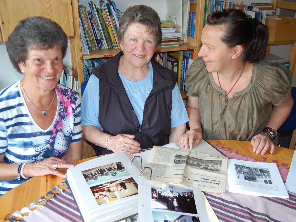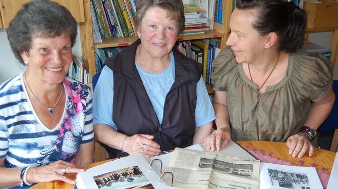 Martha Betz, links, und Irmgard Bogner, beides »Mütter der ersten Stunde«, blättern mit der heutigen Kindergartenleiterin Claudia Bausch-Bennewitz, rechts, in den alten Alben.