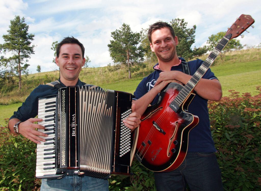 Florian Pfitzer (rechts) und Hansjörg Krämer mischen als Live-Duo HochWild die volkstümliche Szene auf und wollen richtig durchstarten. FOTO: LEIPPERT