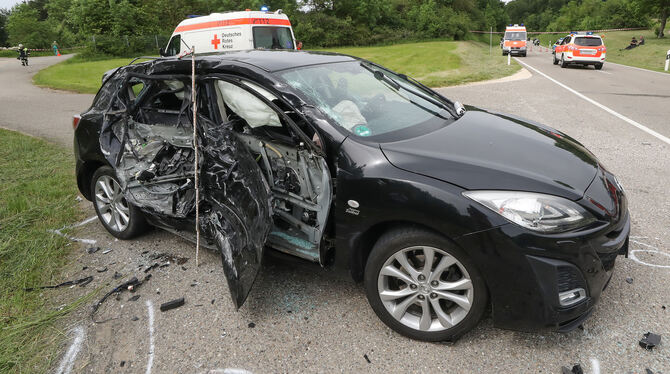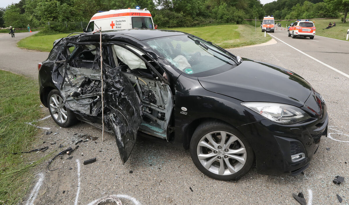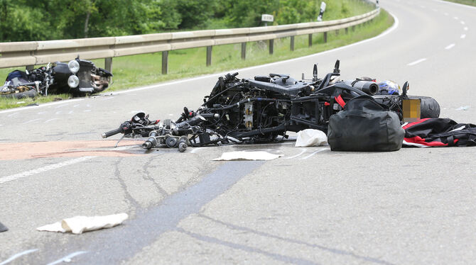TROCHTELFINGEN. Ein Todesopfer forderte ein schwerer Unfall, der sich am Freitagnachmittag bei Trochtelfingen ereignet hat und an dem fünf Motorräder und ein Auto beteiligt waren. Dessen Fahrerin war nach links in einen Seitenweg abgebogen, obwohl ihr ein vorausfahrender Lastwagen die Sicht nach vorn versperrte. Ihr entgegen kam in diesem Moment eine Gruppe von Motorradfahrern aus dem benachbarten Ausland. Die zwei ersten Biker der Kolonne konnten nicht mehr rechtzeitig anhalten und prallten frontal auf das abbiegende Auto.
