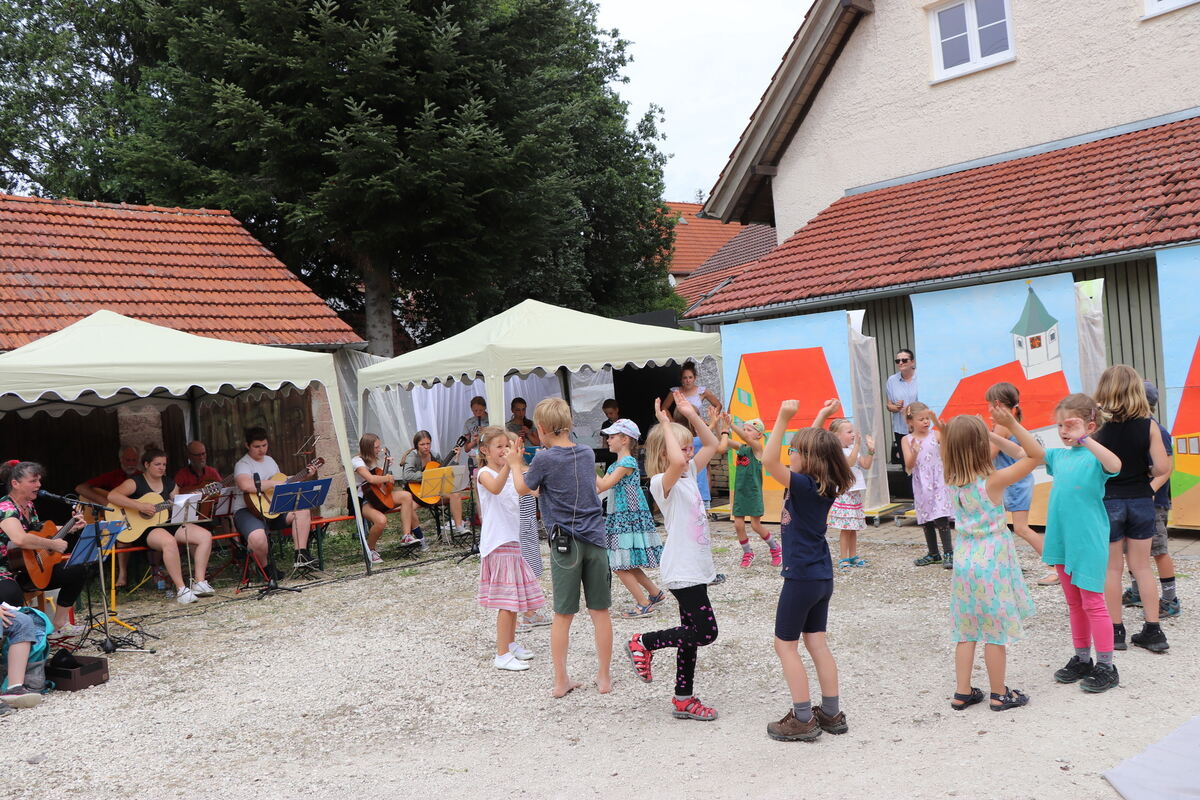 Vor eineinhalb Jahren hatte Julia Renner-Petersmarck die Idee dazu, sie dachte sich die Rollen für die Grundschulkinder aus, komponierte Lieder, choreografierte Tänze, inszenierte und animierte viele Dottinger, sich als Kulissenmaler und Kostümnäher zu engagieren. Schüler ihres Instrumentalunterrichts haben sich mit Gitarren, Flöten und Klavier zur Band zusammengeschlossen und den musikalischen Part übernommen.