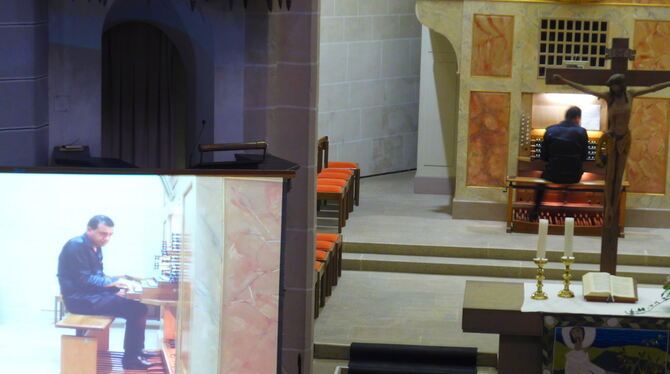 Virtuose an der Orgel: Paolo Oreni begeisterte das Publikum beim Konzert in der Münsinger Martinskirche, mit dem die Eventwoche der Gesellschaft der Musikfreunde Münsingen am Sonntag schloss. FOTO: KADEN