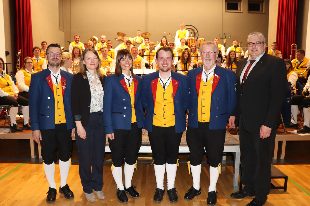 Auch verschiedene Ehrungen standen beim mitreißenden Konzert der Stadtkapelle Hayingen auf dem Programm. FOTO: BLOCHING