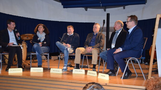 Podium zum Thema Rassismus und Diskriminierung: In der Zehntscheuer gaben in Gesellschaft und Politik Verantwortliche ihre in Münsingen gemachten Erfahrungen darüber weiter. FOTO: OELKUCH