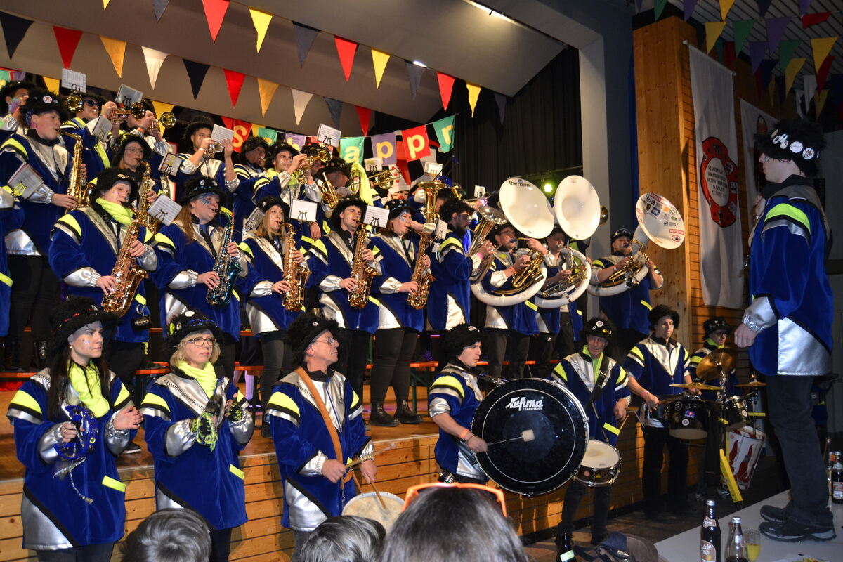 Wie es sich für die Fasnet gehört, spielen die musikalischen Beiträge eine wichtige Rolle, ob vom Band oder live: für jeden war etwas dabei – angefangen bei Michael Holms »Mendocino«, dem »eisgekühlten Bommerlunder«, Smokies »Alice« bis zu »Hey Jude« von den Beatles.