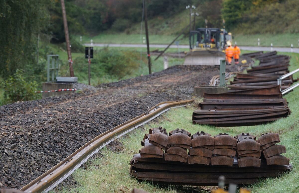 MÜNSINGEN/GOMADINGEN. Bis Ende Oktober, genauer gesagt bis zum 26. des Monats, fährt zwischen Münsingen und Marbach kein Zug der Schwäbischen Alb-Bahn (SAB). Ein Schienenersatzverkehr ist im Einsatz. Der Grund für die Sperrung: Auf einer rund 800 Meter langen Strecke lässt der Infrastrukturbetreiber, die Erms-Neckar-Bahn Schieneninfrastruktur GmbH (RSBNA), Schwellen und Schienen erneuern, die teilweise mehr als 100 Jahre alt sind. Zudem wird die Trassierung angepasst. Mehr als ein Dutzend Arbeiter sind dort in den nächsten Tagen tätig.
