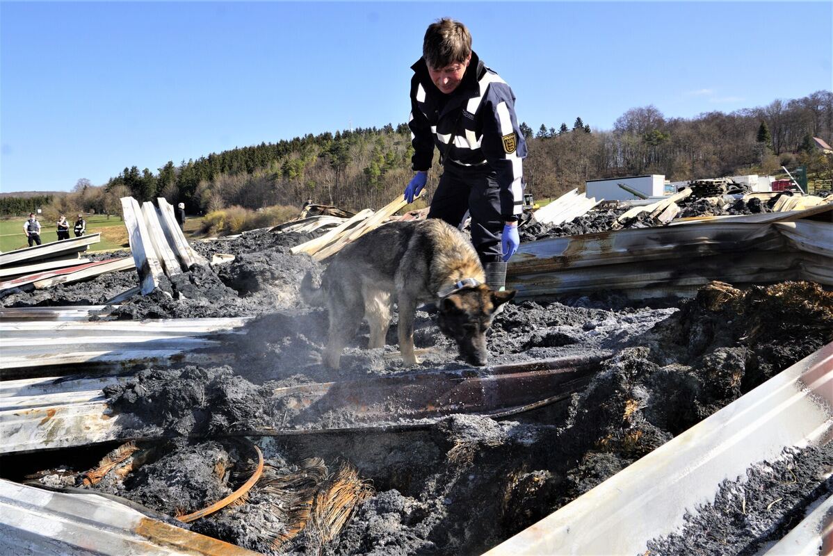 Nach dem Flammeninferno von Münsingen: Polizeihündin Juna sucht nach Spuren