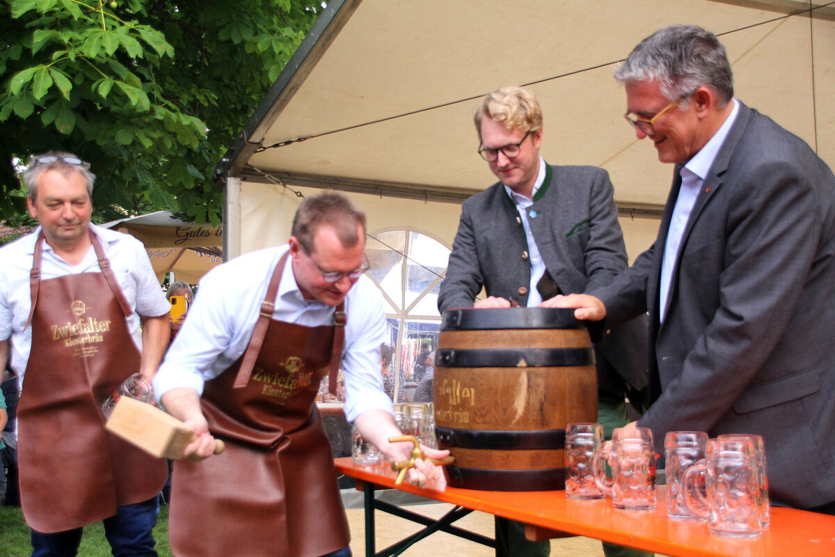 Auch dem Bäckerteam sagte er danke. Brot backen in Backhäusern »und das in allen Ortsteilen«, sei eine Besonderheit, die in Engstingen einfach noch gepflegt würde, betonte Storz. Mithilfe des Schlossherrn Karl Philipp Fürst von Urach und Bundestagsabgeordnetem Michael Donth (CDU) gelang ihm der von Böllerschüssen des Schützenvereins garnierte Fassanstich mit musikalischer Umrahmung durch die Schwäbische Alb Musikanten in vier Schlägen. Das kunterbunte Rahmenprogramm an beiden Tagen konnte sich sehen lassen. Mini- und Jugendtanzgarden des Narrenvereins zeigten schwungvolle Tänze, die Lombakabell sorgte für schräge Töne. Die KJG öffnete ihre neu renovierten Jugendräume zum Besichtigen, Mitarbeiter des Landratsamts Reutlingen stellten das in Engstingen seit letztem Herbst angebotene Pilotprojekt »Land-Mobil« vor. Beim Kunsthandwerker-Markt konnte nach Schätzen gesucht werden, ein Bücherflohmarkt lud zum Lesen und Schmökern ein, die Schießbude des Schützenvereins und ein Kinderprogramm vervollständigen das Angebot. Am Samstagabend gab es mit »Albrocker« schmissige Partymusik, Sonntagmorgen dann fetzige Blas-musik von den Köhlermusikanten. Für hungrige Mägen boten die Vereine Maultaschen, Zigeunerspieße, Göckele, Schupfnudeln, Dennete und die üblichen Grillwürste, Crêpes oder Waffeln; Kuchen erfreuten süße Mäuler.