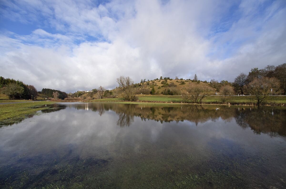 Es ist kaum zwei Wochen her, dass Frau Holle die Alb in eine Winterwunderwelt verwandelt hat. Stellenweise lag fast ein halber Meter Schnee. Dann setzte nicht nur Tau-, sondern auch Regenwetter ein. Schneeschmelze und Dauerregen haben die Grundwasserreservoirs aufgefüllt. Die Lauter ist, wie in Gomadingen, stellenweise über ihre Ufer getreten und hat – was laut Gomadinger Gemeindeverwaltung weder ungewöhnlich noch be-sorgniserregend ist in dieser Jahreszeit – Wiesen überflutet. Wie stark die Pegel angestiegen sind, lässt sich am (echten) See am Gomadinger Spielplatz anschaulich ablesen. Am Steg, der bei trockenem Wetter gut 35 Zentimeter über der Wasseroberfläche liegt, steht das Wasser bis zur Unterkante. (ma)