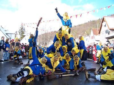 Größtes Vergnügen auf beiden Seiten: Bunter Hexenhaufen, beim Gauselfinger Umzug zur Pyramide geformt.