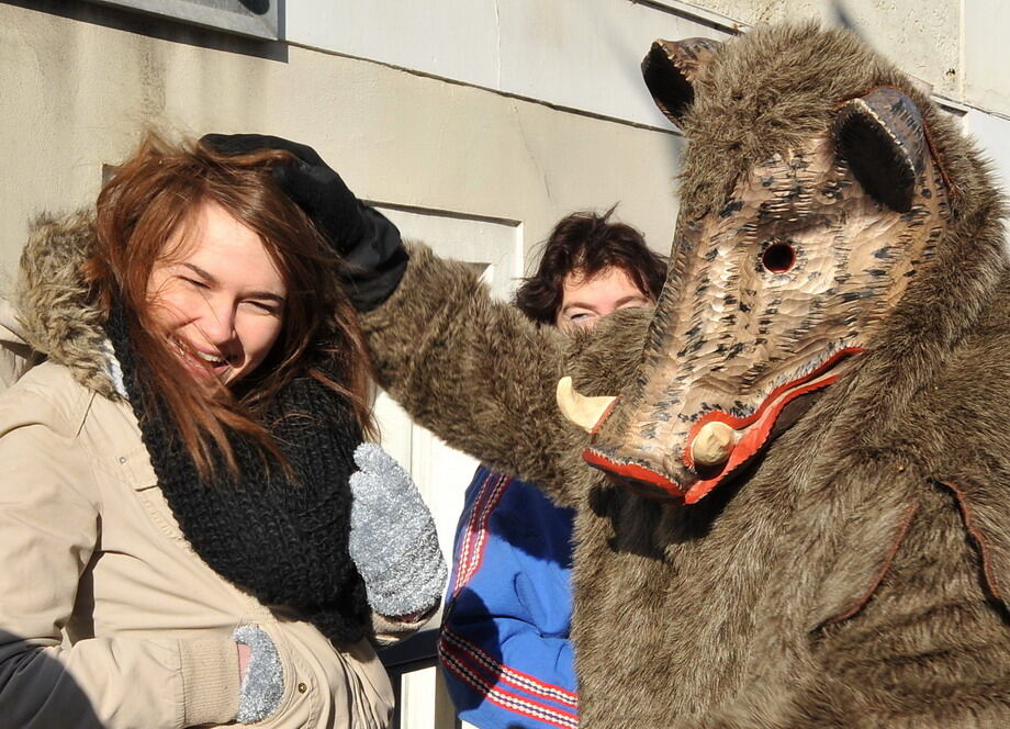 Bei Eiseskälte gingen die Narren auf Tuchfühlung und Kuschelkurs mit den Zuschauern in Gammertingen.