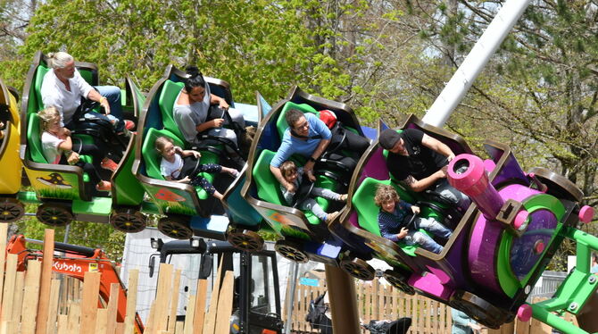 SONNENBÜHL. Die neue Achterbahn im Traumland auf der Bärenhöhle ist am Montag offiziell eröffnet worden. »Pünktlich zur Parköffnung am Morgen ist die Bahn in Betrieb gegangen«, bestätigte Nadine Friedl-Behrens, Teamleiterin Marketing und PR des Sonnenbühler Freizeitparks, auf GEA-Anfrage. Aufgrund des regnerischen Wetters sei der Andrang aber überschaubar gewesen. »Aber ein paar Hartgesottene haben bereits fleißig ihre Runden gedreht.«