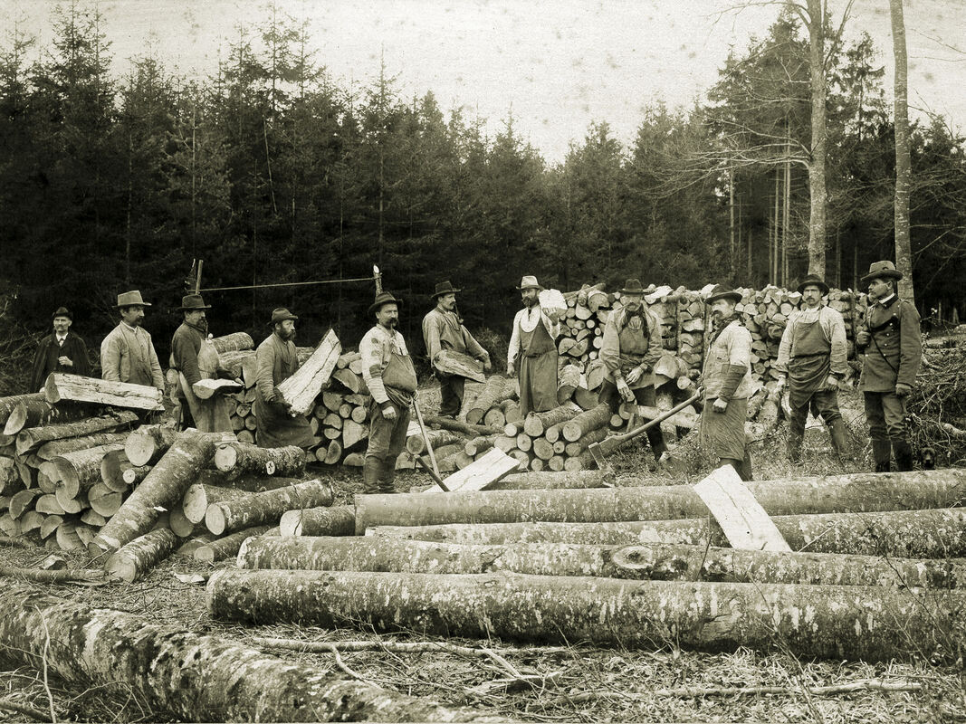 Wieder wurden dazu eindrucksvolle historische Bilddokumente zusammengetragen: von Holzmachern, von Pflanzfrauen mit Körben voller Fichtensetzlinge, von Förstern in Uniform. Die Ausbeute zweier Aufrufe in St. Johann und Bad Urach, Waldbilder von früher einzuschicken, war sehr erfolgreich: »Da hätten wir zwei bis drei Kalender machen können«, berichtet Albert Schediwy von den Oldtimerfreunden. Die Fotos lassen erahnen, wie hart die Waldarbeit war, wie mühsam und gefährlich es gewesen sein musste, einer stattlichen Buche nur mit Muskelkraft, Axt und Säge zu Leibe zu rücken. Sie zeigen aber auch: Waldarbeit war Gemeinschaftssache, anstrengend, aber auch gesellig.