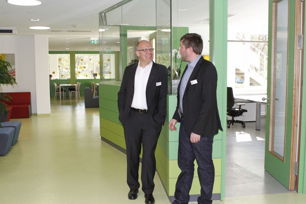 Chefarzt Dr. Alexander Baier (links) und Martin Eggler, Pflegerische Leitung der Abteilung Neuropsychiatrie, stellen die neuen Räume der Station vor. FOTO: LEUSCHKE