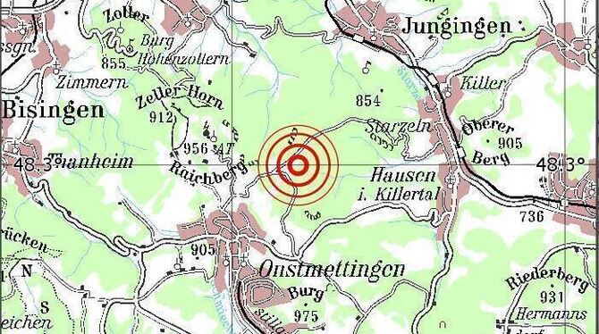 Nach ersten Messungen des Schweizerischen Erdbebendienstes hatte das kurze Beben eine Stärke von 3,4. Der Landeserdbebendienst misst eine Stärke von 3,2 auf der Magnitude als Wert. Der Herd lag, wie in der Nacht um 4.43 Uhr, an der seit Monaten fragilen Schollenkante im Untergrund zwischen Zollernberg und Jungingen.