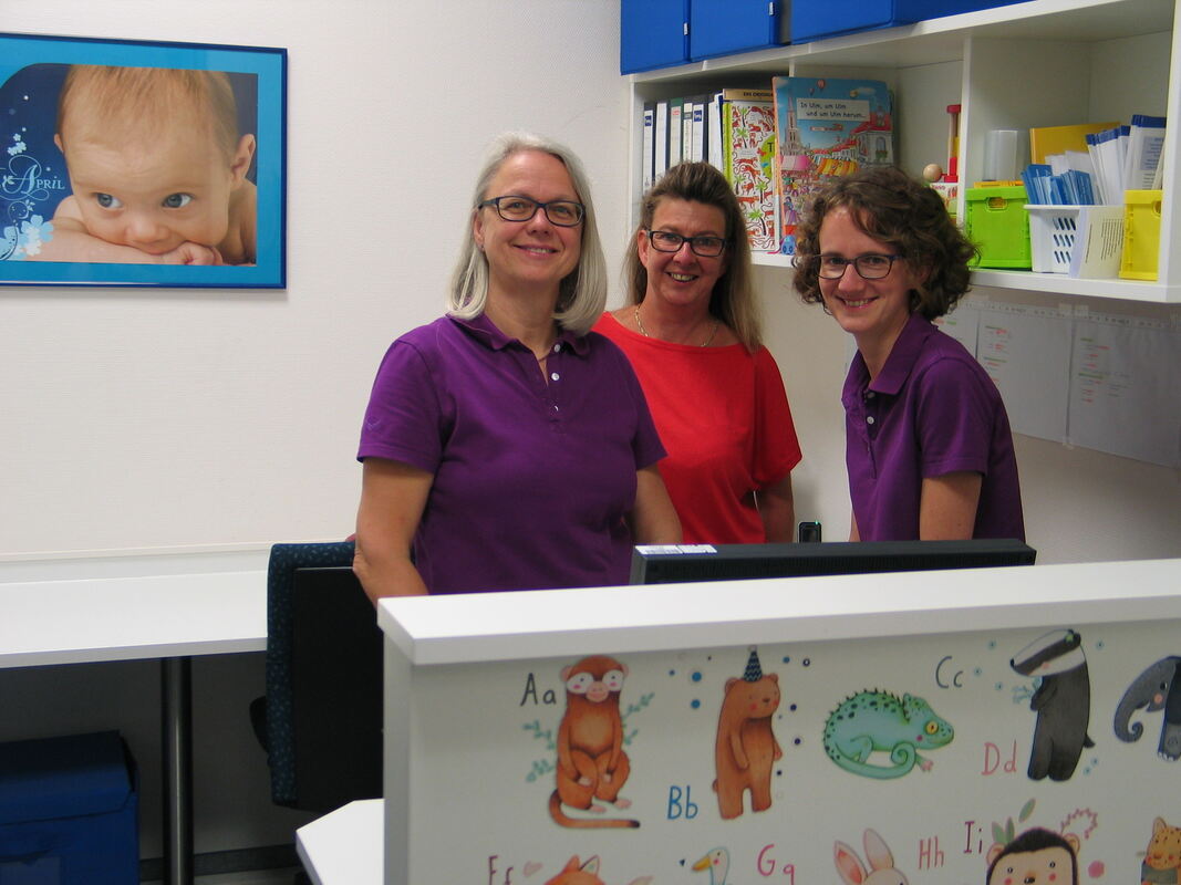 Kinderärztin Elisabeth Nagel und ihre neue Kollegin Verena Nopper, rechts, sind ab 20. August wieder für kleine Patienten an der Albklinik in Münsingen da. Arzthelferin Susanne Wuttke, Mitte, koordiniert jetzt bereits die Termine. FOTO: OELKUCH