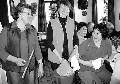 Den Herausforderungen des Frühjahrsputzes begegnet Margret Brändle (Mitte) mit praktischen Hilfsmitteln und Humor.