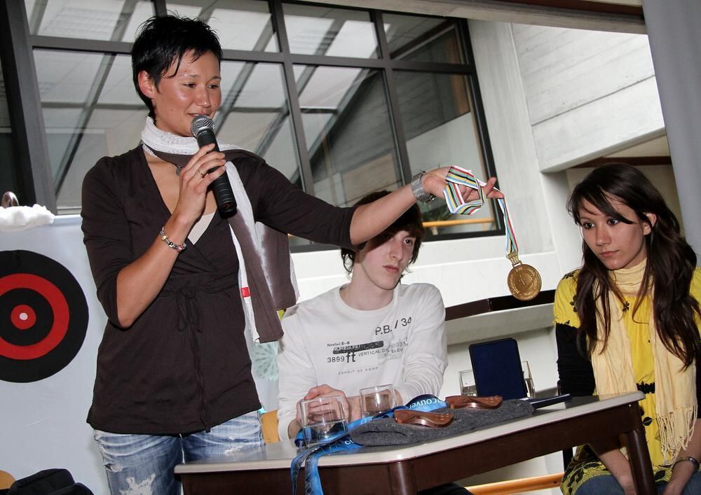 Medaillen zum Anschauen und Anfassen hatte Simone Hauswald den Münsinger Berufschülern mitgebracht.