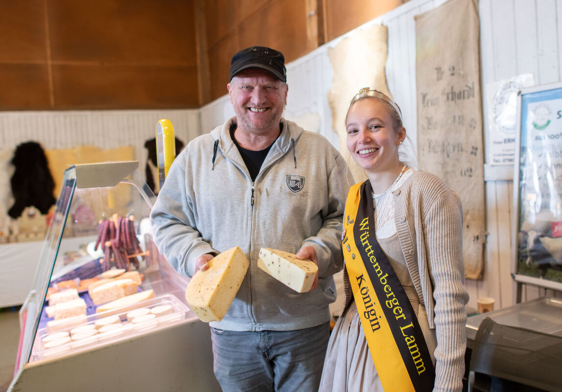 Schäferei. »Die haben's mit den Leuten.« Und das beruht auf Gegenseitigkeit. Franz Eberhardt schätzt seine 130 ostfriesischen Milchschafe nicht nur für ihre zutrauliche Art, sondern auch für das, was sie liefern: Den Rohstoff für seinen Käse, den er in seinem Familienbetrieb in Ellwangen-Killingen herstellt. Einen Liter Milch pro Tag gibt ein Schaf am Anfang seiner »Karriere«, seinen Leistungshöhepunkt erreicht es erst mit drei, vier Jahren - dann sind auch drei, vier Liter Milch drin. So eine wollige Friesin kann schon mal zwölf Jahre alt werden - und das darf sie auch: »Die alten Schafe dürfen friedlich einschlafen«, sagt Franz Eberhardt, »mir geht es hauptsächlich um die Milch«. Fleisch und Wolle sind für ihn Nebenprodukte.