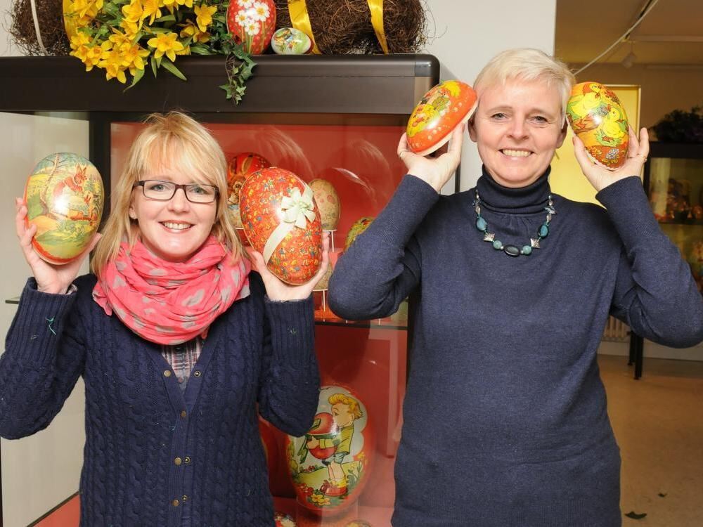 Hannelore Pintscher (rechts) und Heike Gagliardi kommen die Eier noch nicht zu den Ohren raus.