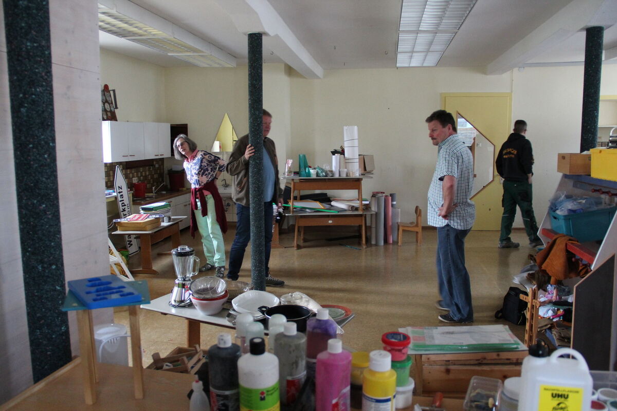 Für Ortschaftsrat und Bürgerverein Ohnastetten verschaffen sich (von links) Ulrike Blümel, Michael Früh, Andreas Tölke und Michael Tölke schon mal einen Eindruck davon, was im früheren Kindergarten getan werden muss. FOTO: DEWALD