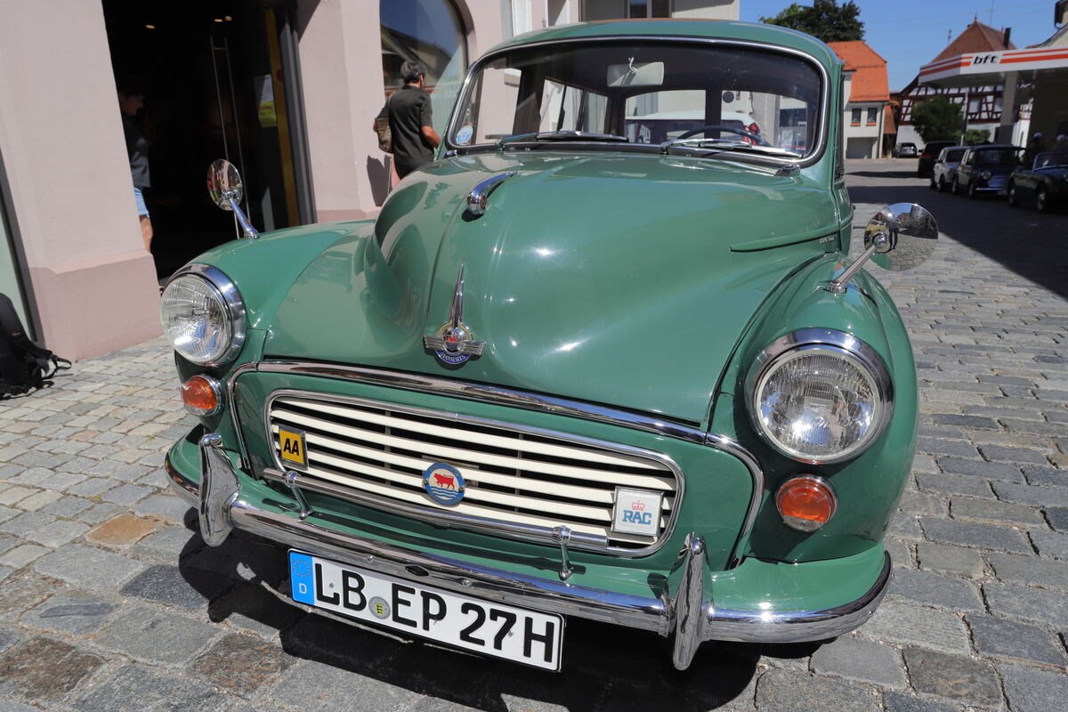 Die Teilnehmer kommen aus ganz Deutschland: von Pinneberg bis Friedrichshafen. Da schlagen die Herzen der Zweitaktfans höher. Fahrzeuge mit so klangvollen Namen wie NSU Prinz, Borgward Arabella, die bekannte und berühmte Ente, ein Morris Minor Traveller, auch Woody genannt wegen seiner Holzkarosserie, parkten für kurze Zeit in der Marktstraße. Ganz wertvoll und selten: eine Lloyd Frua, von der es, laut Rainer Klink, Organisator und Betreiber des Boxenstop Museums, nur noch vier Stück gibt.