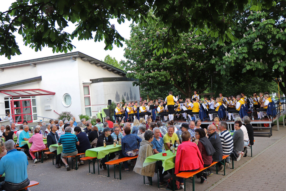Das erste Open-Air-Konzert der Stadtkapelle Hayingen auf dem Schulhof der Digelfeldschule wurde ein Erfolg – trotz des windigen Wetters. Im kommenden Jahr soll es eine Wiederholung geben FOTO: BLOCHING