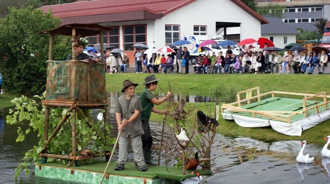 Originelle Wasserfahrzeuge auf der Lauchert bei Hörschwag. Foto: Jürgen Früh