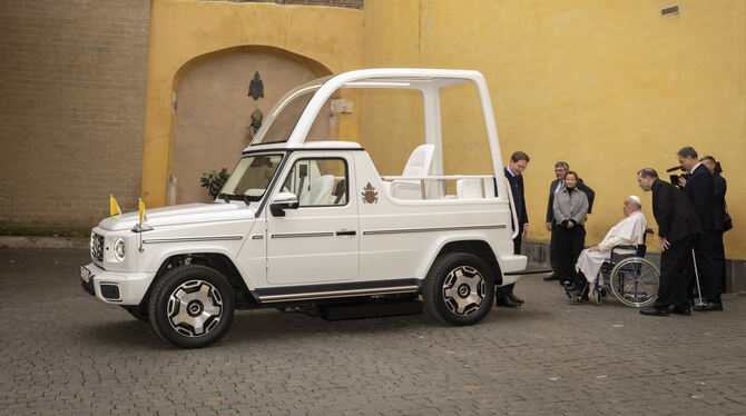 Feierliche Übergabe des Papamobils im Vatikan: Demnächst ist Papst Franziskus nicht nur elektrisch, sondern auch barrierefrei un