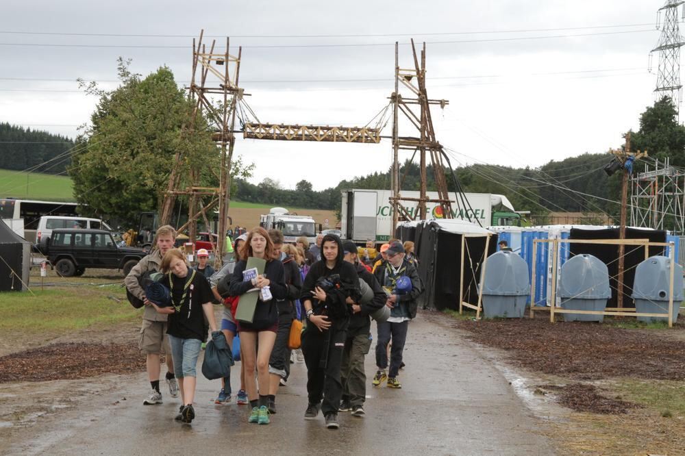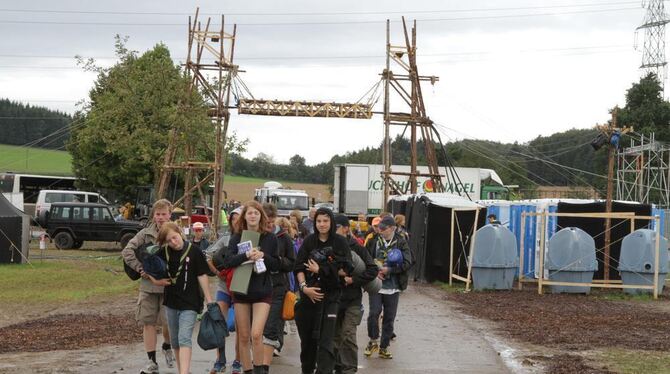 Glücklich betreten die Pfadfinder wieder ihre Zeltstadt.