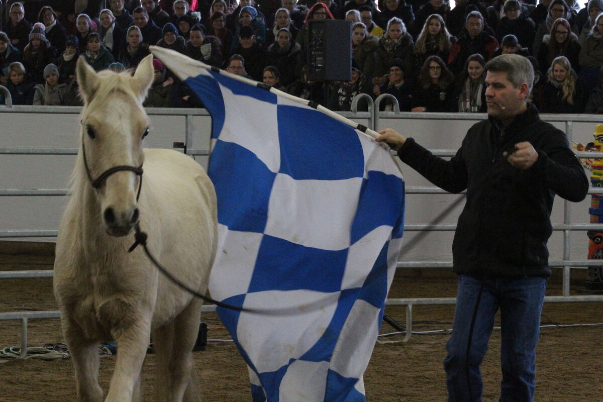 Pferdetrainer Hackl zeigt in Marbach wie er arbeitet