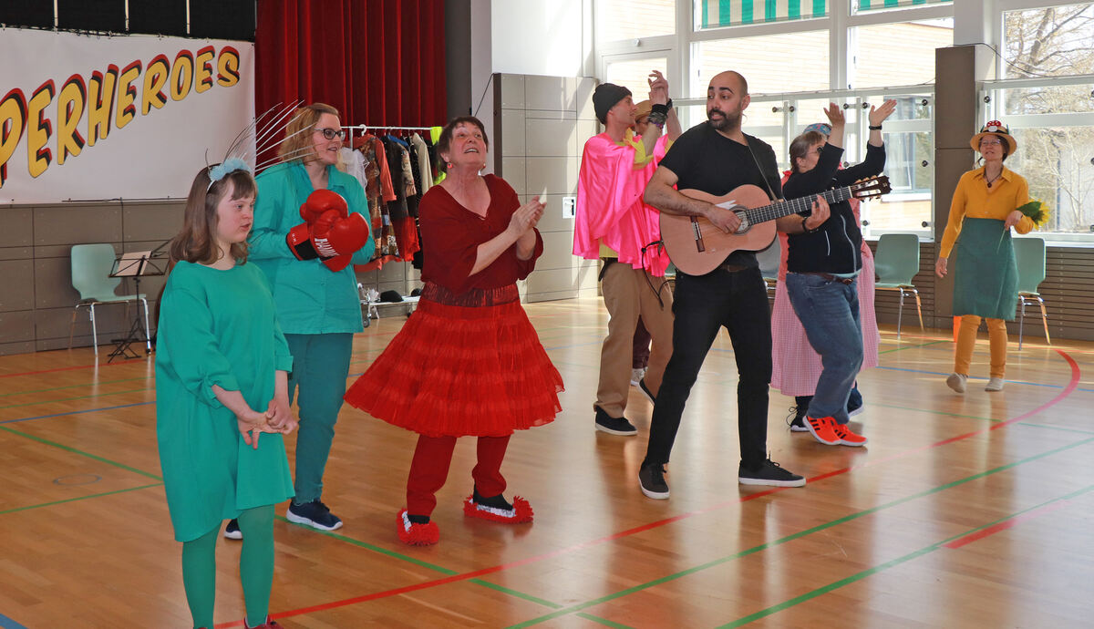 Gemeinsam mit Musiker Mazen Mohsen gestalteten die Teilnehmer des »Spielclubs inklusiv« eine tolle Werkschau. FOTO: BLOCHING