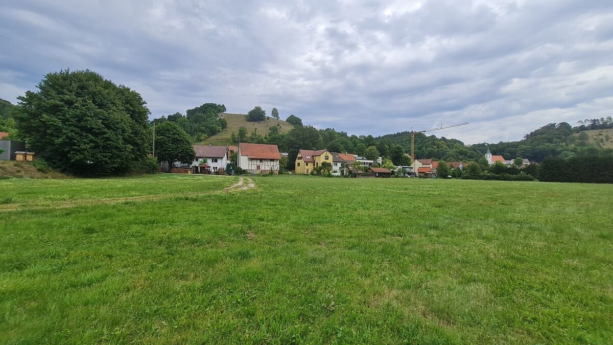 Jetzt noch grüne Wiese, bald Baugebiet? In Buttenhausen sollen elf Reihenhäuser entstehen. FOTOS: SCHRADE/WERTBAU FINANZ HOLDING AG