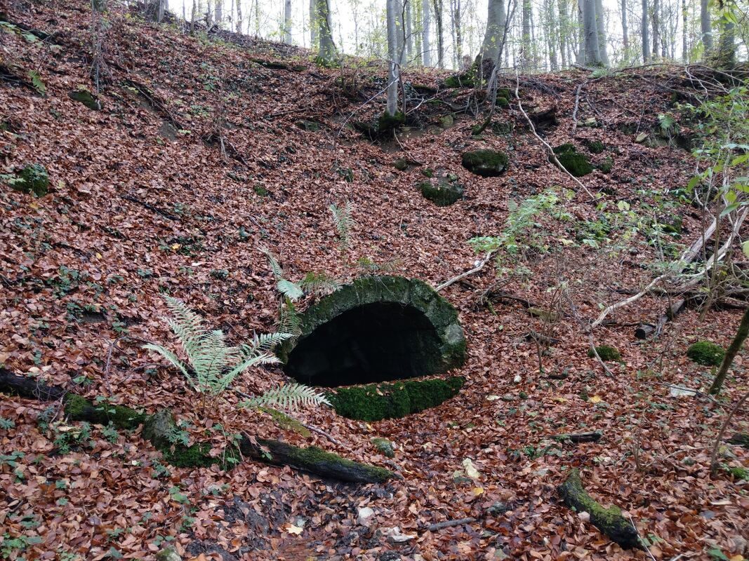 Deutlich zu erkennen ist die Quellfassung des Pfaffenbrünneles im Wald nahe der Fohlensteige.