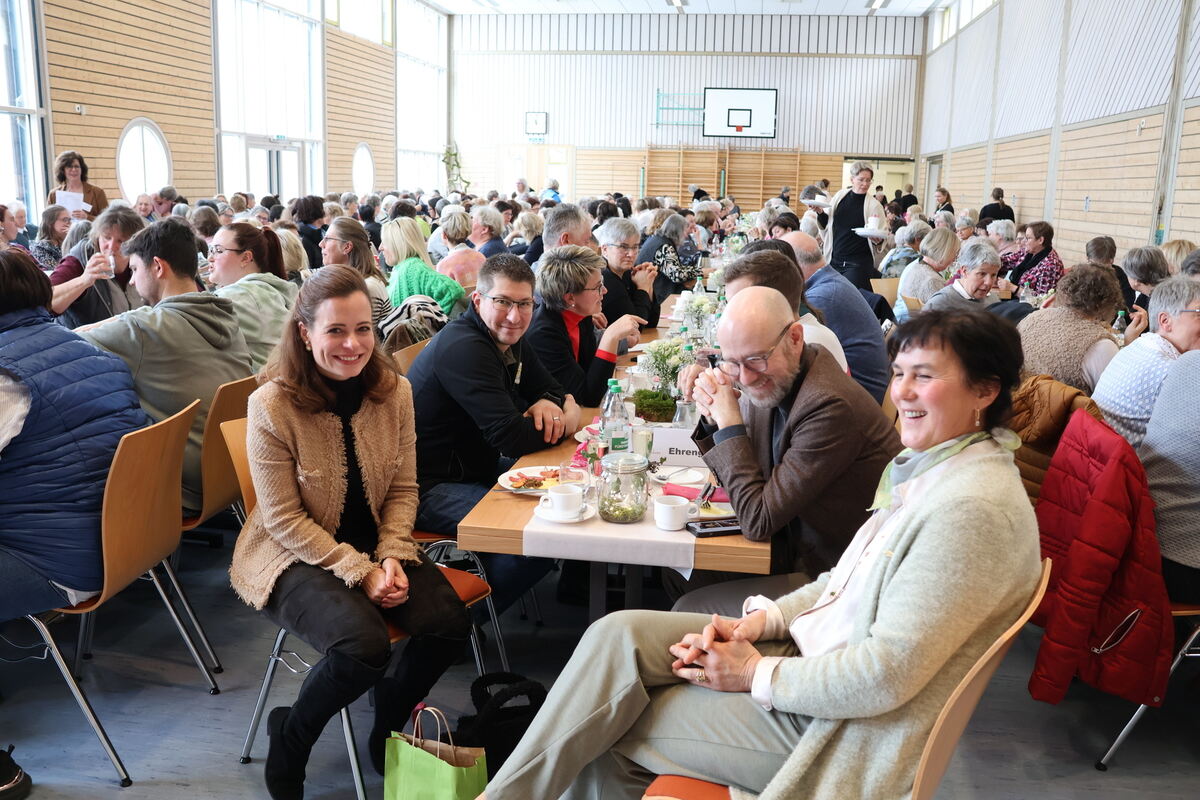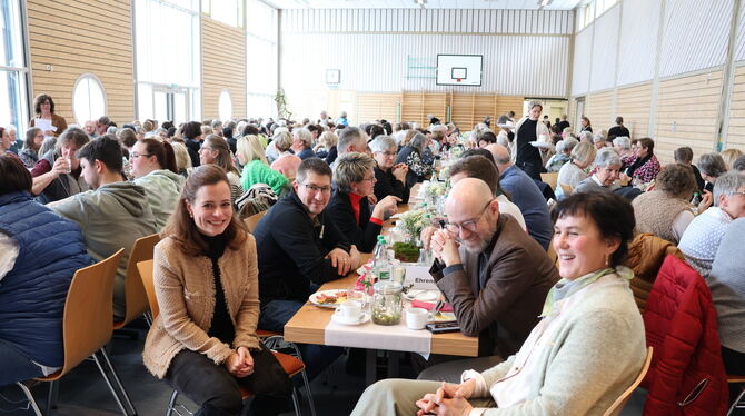 Volles Haus in Gomadingens Sternberghalle mit Bonita Grupp (vorne links) und Kreisvorsitzende der Landfrauen Pia Münch ganz vorne.