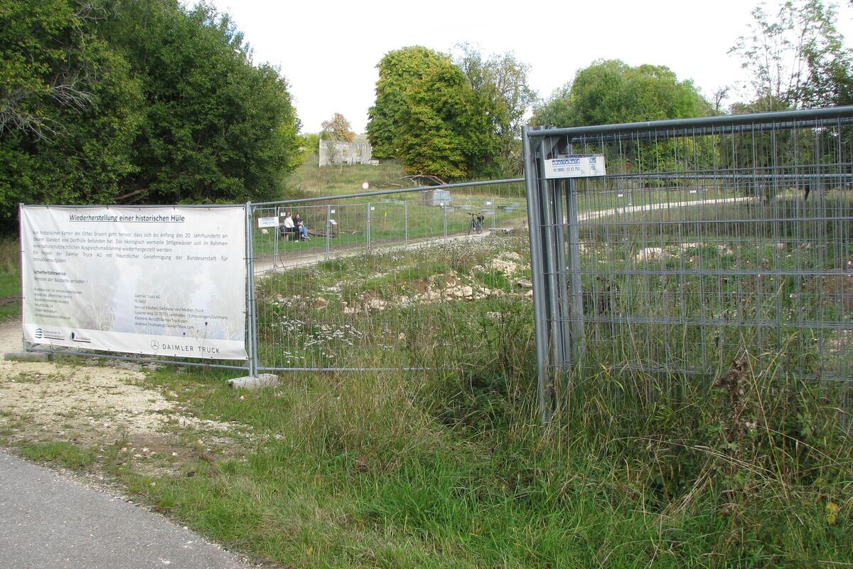 GRUORN. Das ehemalige Dorf Gruorn auf dem ausrangierten Truppenübungsplatz Münsingen erhält seine Hüle zurück. Nachdem die Arbeiten im Frühjahr dieses Jahres aus naturschutz- und umweltfachlichen Gründen unterbrochen wurden, sollten die Arbeiten dort am Dienstag wieder aufgenommen werden. Westlich des alten Schulhauses, so ist alten Karten zu entnehmen, war »das ökologisch hochwertige Stillgewässer« zu finden, teilt der Bundesforstbetrieb Heuberg mit. Diese Renaturierung ist Teil eines naturschutzfachlichen Ausgleichskonzepts, das von der Daimler Truck AG finanziert wird. Seit zwei Jahren betreibt sie eine Akustikmessstrecke nordöstlich des Alten Lagers (heute Albgut) im Gewann Linsenäcker auf dem ehemaligen Truppenübungsplatz. Dort hatte früher das französische Militär einen Sportplatz, wo auch Antreten und andere militärische Zeremoniells stattfanden. Der Bundesforst macht darauf aufmerksam, dass in den nächsten Wochen mit vermehrtem Baustellenverkehr im Bereich von Gruorn und den Zuwegen zu rechnen sei. (lejo)